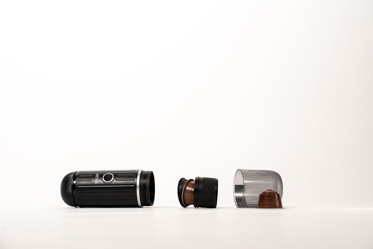 De Portable Espresso Maker van Bellaro zet binnen enkele minuten verse espresso thuis, onderweg of buiten.